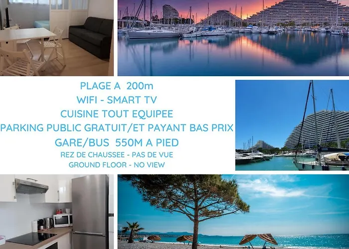 A propriedade está a 4 km de Tour de la Madone e 1.9 km de Phoques. A cidade de Villeneuve-Loubet está a 4 km de distância. Vários restaurantes nas proximidades, incluindo La Pagode, Pub Le Pitcher e Villa Azur, oferecem refeições deliciosas e estão situados a 150 metros.Pontos de interesse adicionais da área incluem Eglise Saint Christophe e Fleurs de Vacuite Assoc.
